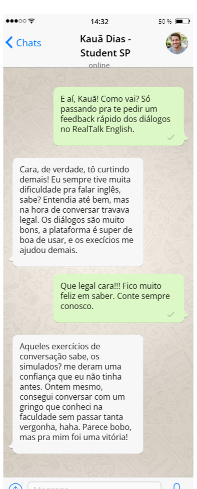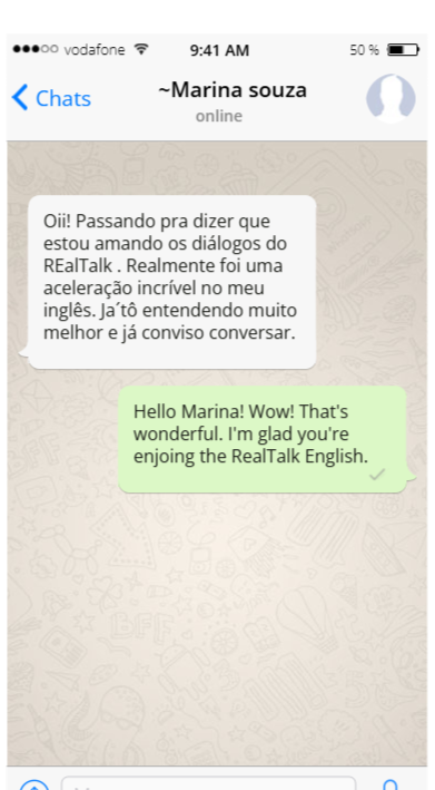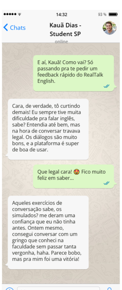 💡 O RealTalk English resolve isso, te colocando em contato direto com o inglês real, do jeito que as pessoas realmente falam.